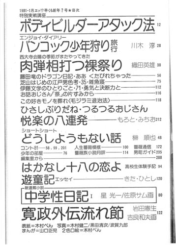 薔薇族目次 1981年1月~1981年12月(途中抜けあり) この文字をクリックして、画像を見る 国立国会図書館蔵