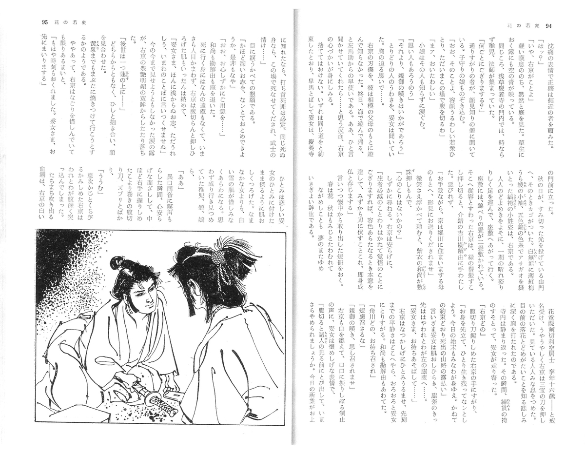 この物語は采女の若衆から念者への成長物語であること、若衆が二人なので、前髪が残っていて貴重なこと、采女の念者の左馬助の引き際が急ぎよいこと、普段はなよやかな右京が主膳を刀で切りつける雄々しさを見せつけること、ラストは誓い合ったとおりに一緒に死ぬことなど、萌えポイントがたくさんです。